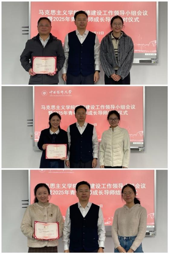 为帮助新教师尽快掌握思政课教学要求、提高科研能力和综合素养,学院选聘金家新、王亚萍、孟杰等3位优秀骨干教师担任2025年新入职青年教师成长导师。学院党委书记、院长陈卫忠颁发导师聘书,并向结对师徒送上祝福和勉励。